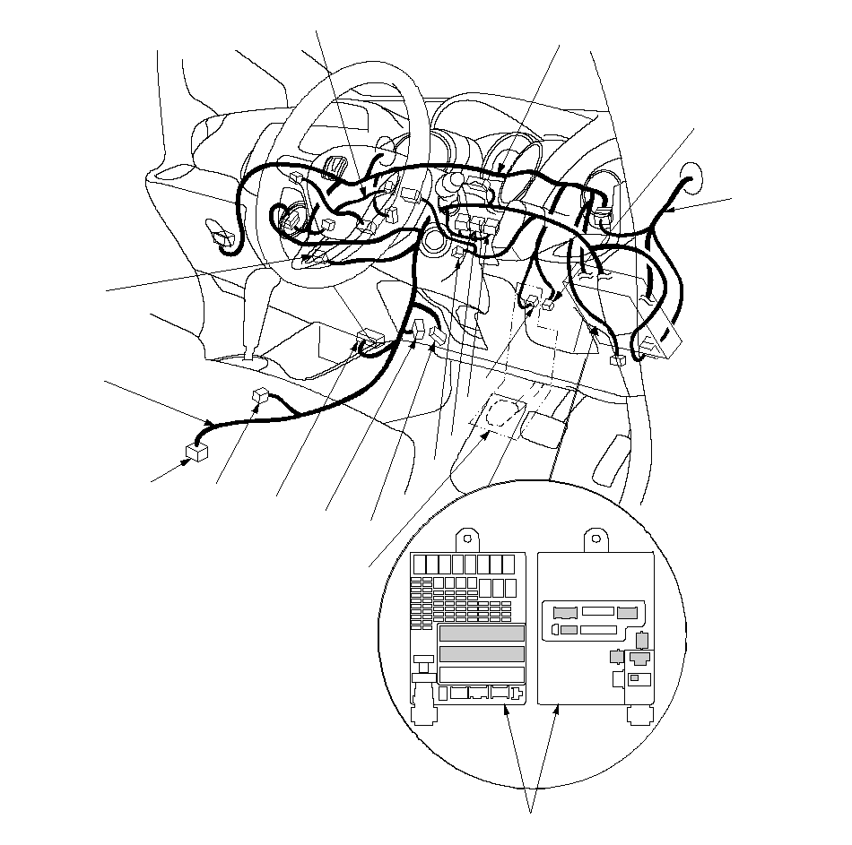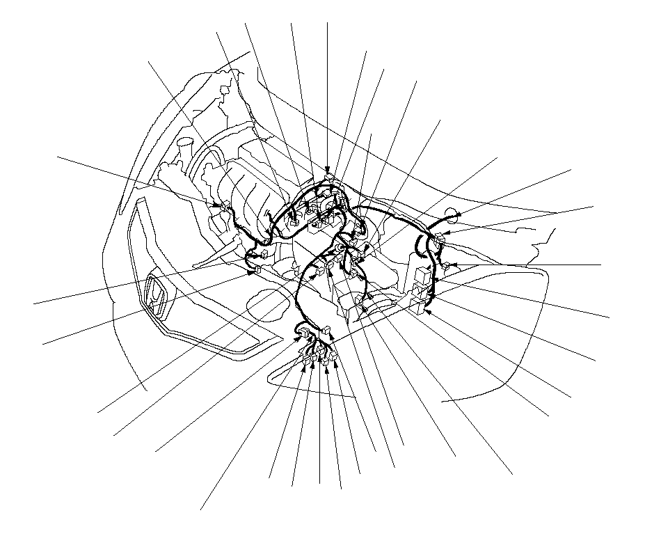 Расположение электропроводки топливной системы и системы выпуска отработанных газов