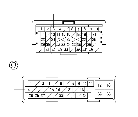 Проверьте непрерывность соединения между клеммами А3 разъема блока ECM и клеммой № 14 разъема 36Р блока модулятора-управления VSA.