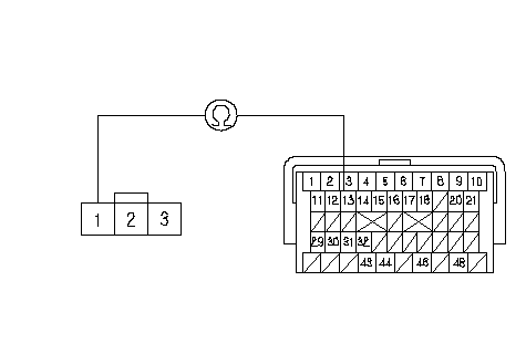 Проверьте неразрывность соединения между клеммой C13 разъема компьютера РСМ и клеммой № 1 датчика частоты вращения ведомого (выходного) вала.