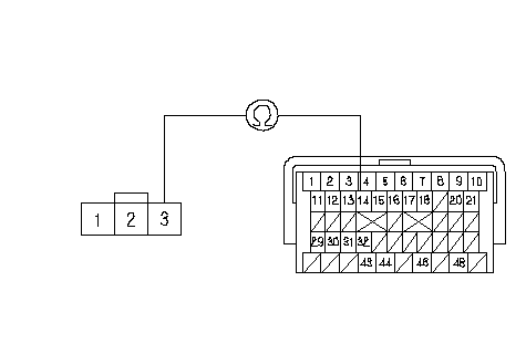 Проверьте неразрывность соединения между клеммой C14 разъема компьютера РСМ и клеммой № 3 датчика частоты вращения ведомого (выходного) вала.