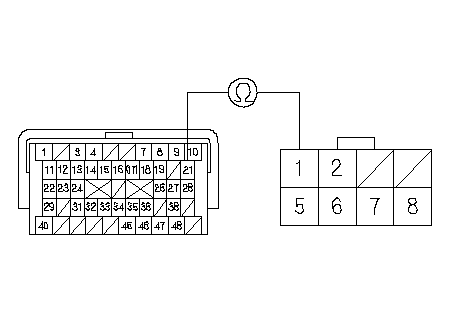 Измерьте сопротивление между клеммами B21 и С44 или С48 разъема блока РСМ.