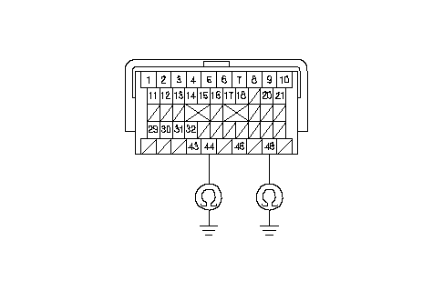 Проверьте неразрывность соединения между клеммой C44 разъема модуля РСМ и "массой" и между С48 и "массой".
