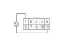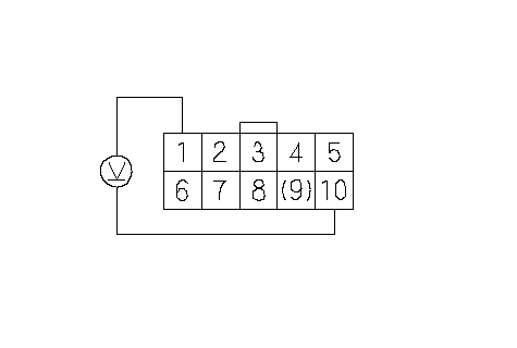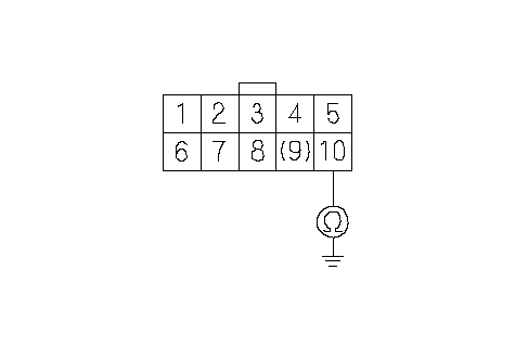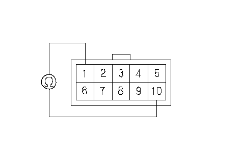 Проверьте неразрывность соединения между клеммами № 1 и № 10 разъема переключателя режимов трансмиссии, пока рычаг селектора в положении R и когда рычаг селектора переключен на любое другое положение, отличное от R.