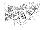 Подсоедините разъемы жгута проводов двигателя и хомуты жгута проводов к головке цилиндров.