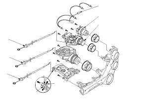 При помощи специальных клещей расширьте стопоры троса (А) в держателе троса (В), затем вытяните трос управления рециркуляцией (С), трос управления режимами (D) и трос управления смесителем воздуха (Е).