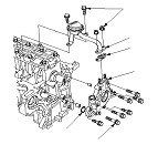 Удерживайте двигатель с помощью домкрата и деревянного бруска, подложенного под масляный поддон.