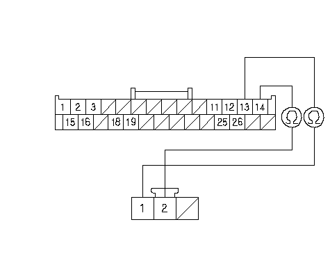 Проверьте неразрывность между "массой" кузова и клеммами № 13 и № 14 28Р разъема блока управления Hands Free по отдельности, а затем между клеммами № 12 и № 13.