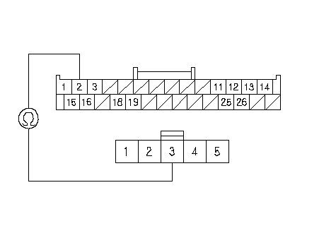 Проверьте непрерывность цепи между клеммой № 2 28P разъема блока управления системой Hands Free и клеммой № 3 5Р разъема выключателя HFT.