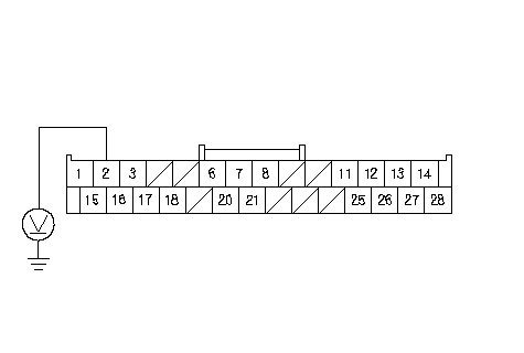 Измерьте напряжение между клеммой № 2 28P разъема блока управления Hands Free и «массой» кузова.