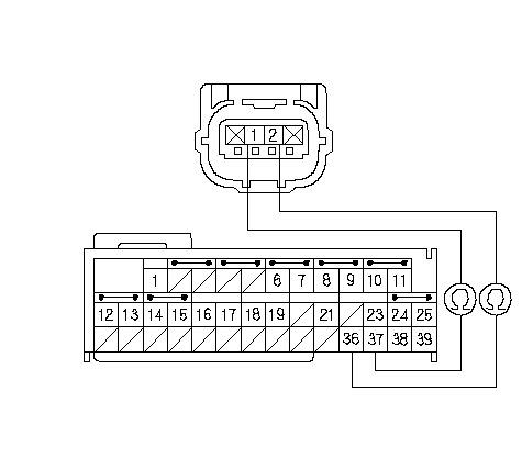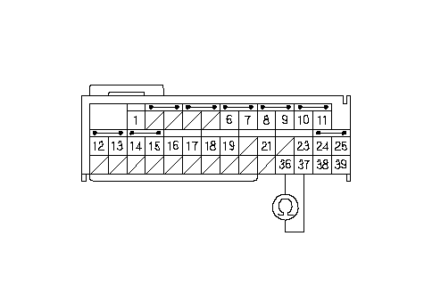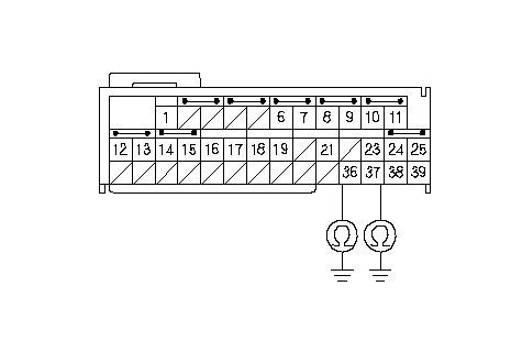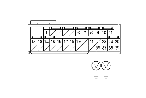 Измерьте напряжение между клеммой № 36 разъема В (39P) блока SRS и "массой" кузова, и между клеммой № 37 и "массой" кузова. Напряжение должно быть не более 1,0 В.