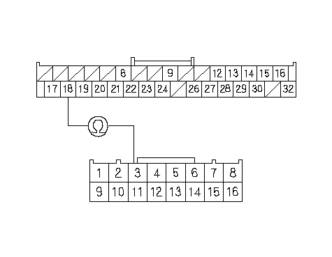 Проверьте неразрывность цепи между клеммой № 3 разъема Q (16Р) блока предохранителей/ реле под панелью приборов и клеммой № 18 32Р разъема блока управления приборами.