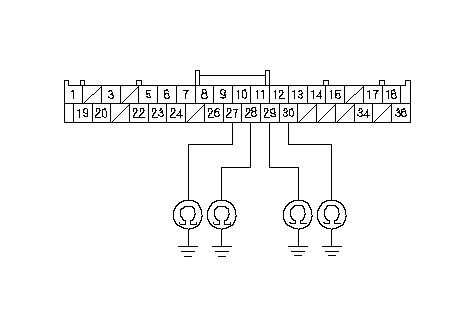 Проверьте неразрывность соединения между клеммами 36Р разъема блока климат-контроля следующим образом.