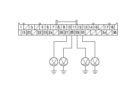 Включите зажигание, повернув ключ в положение ON (II), и проверьте напряжение на "массу" кузова на этих же клеммах.