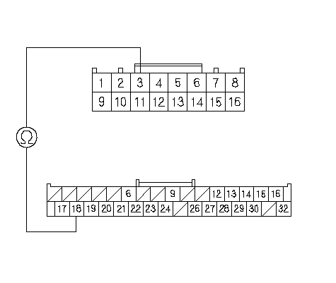 Проверьте неразрывность цепи между клеммой № 3 разъема Q (16Р) блока предохранителей/ реле под панелью приборов и клеммой № 18 32Р разъема блока управления приборами.