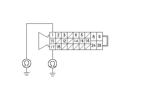 Проверьте неразрывность цепи между клеммами № 1 и № 17 25P разъема блока управления-модулятора ABS и "массой" кузова по отдельности.