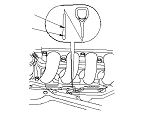 Если уровень масла находится около нижней отметки или ниже, долейте моторное масло - его уровень должен быть между верхней и нижней отметками.
