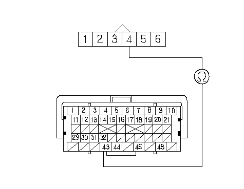Проверьте неразрывность соединения между клеммой C43 разъема компьютера ЕСМ/РСМ и клеммой № 4 6Р разъема корпуса дроссельной заслонки.
