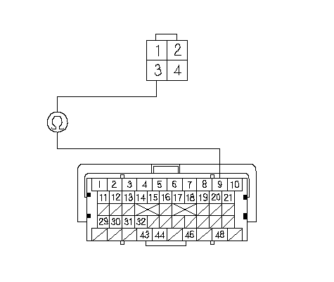 Проверьте неразрывность соединения между клеммой № 4 4Р разъема реле датчика A/F (датчик 1) и "массой" кузова.