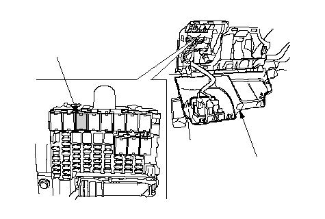 Откройте крышку предохранителя (А), затем выньте главное реле датчика A/F (В) из блока предохранителей/реле под приборной панелью.