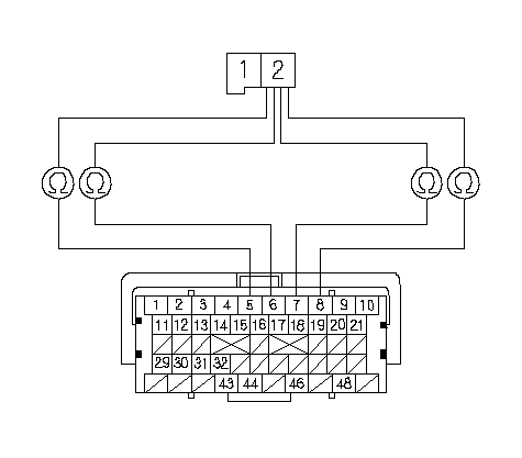 Со стороны инжектора измерьте сопротивление между клеммами № 1 и № 2 разъема 2P инжектора.
