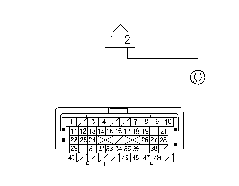 Измерьте сопротивление между клеммами № 1 и № 2 2P разъема клапана продувки бачка абсорбера EVAP.