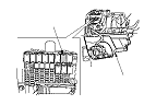 Откройте крышку предохранителя (А), затем снимите реле ETCS (В) из блока предохранителей/реле под приборной панелью.