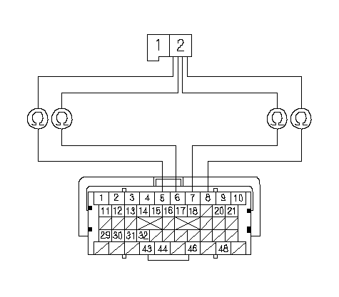 Измерьте напряжение между "массой" кузова и соответствующей клеммой разъема компьютера ЕСМ/РСМ неисправного цилиндра (смотрите таблицу).