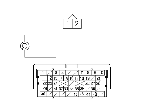 Измерьте сопротивление между клеммами № 1 и № 2 2P разъема клапана продувки бачка абсорбера EVAP.