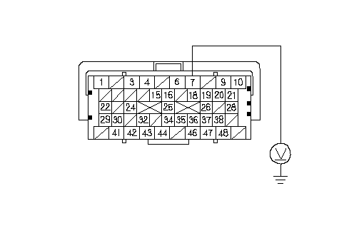 Измерьте напряжение между клеммой А7 разъема компьютера ЕСМ/РСМ и "массой" кузова.