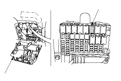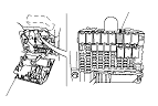 Откройте крышку предохранителя (А), затем выньте главное реле 1 модуля PGM-Fl (В) из блока предохранителей/реле под приборной панелью.