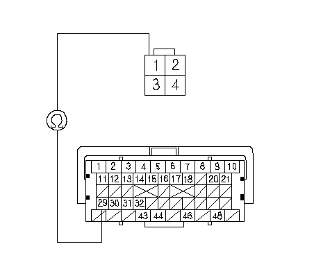 Проверьте неразрывность соединения между клеммой № 1 4-контактного разъема датчика A/F (Датчик 1) и клеммой С29 разъема компьютера ECM/PCM.