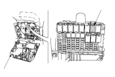 Откройте крышку предохранителя (А), затем снимите реле ETCS (В) из блока предохранителей/реле под приборной панелью.