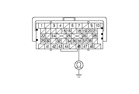 Проверьте неразрывность соединения между клеммой A36 разъема компьютера ЕСМ/РСМ и "массой" кузова.