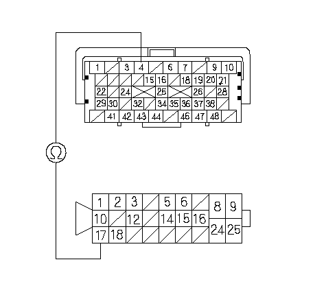 Проверьте неразрывность соединения между клеммами А3 разъема блока ECM/PCM и клеммой № 1 разъема 25Р блока модулятора-управления ABS.