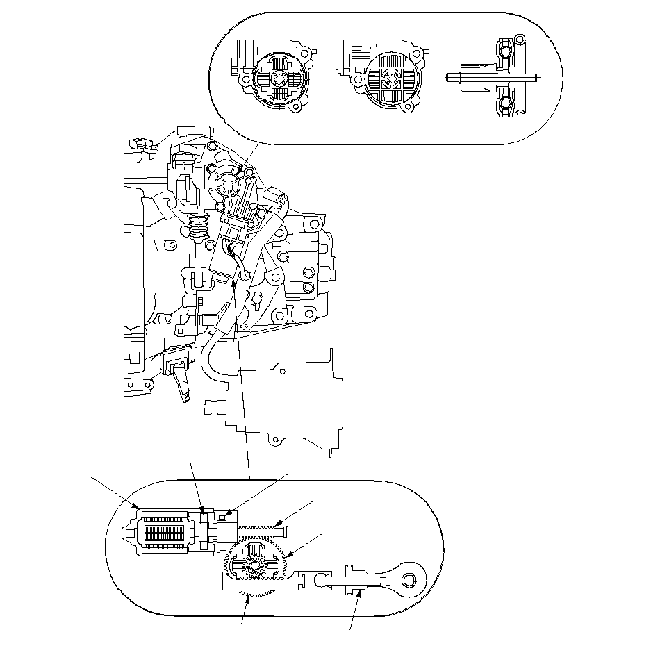 По сигналам управления из блока ТСМ работает электродвигатель, и, толкая тягу исполнительного элемента переключения посредством механизма шестерен, работает рычаг переключения передач трансмиссии. В этой точке датчик положения определяет положение рычага переключения передач трансмиссии.