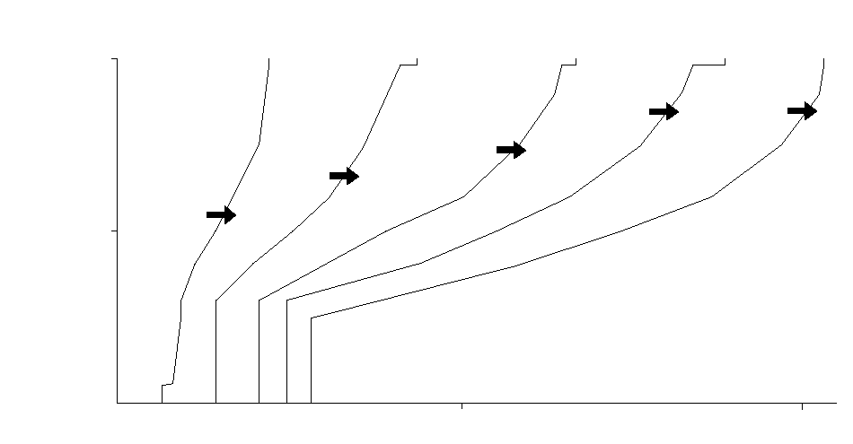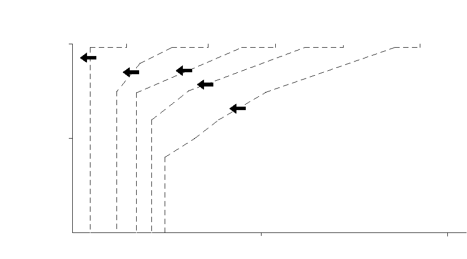 В автоматическом режиме передачи переключаются согласно открытию дроссельной заслонки и скорости автомобиля. Скорость автомобиля для степеней открытия дроссельной заслонки при движении показана на графике характеристик переключения передач.